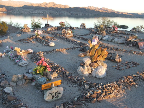 Anyone who visits Black Meadow Landing for more than a day will, invariably, find their way to the Memorial Garden. You are immediately taken by the magnificent overview of Lake Havasu itself. The peaceful silence is sometimes broken by the voice of the desert; the beauty of the rugged desert landscape surrounds you; the wondrous sunrises give way to the light of day and then on to a night sky aglow with billions of shining stars and planets featured with the face of the moon.
