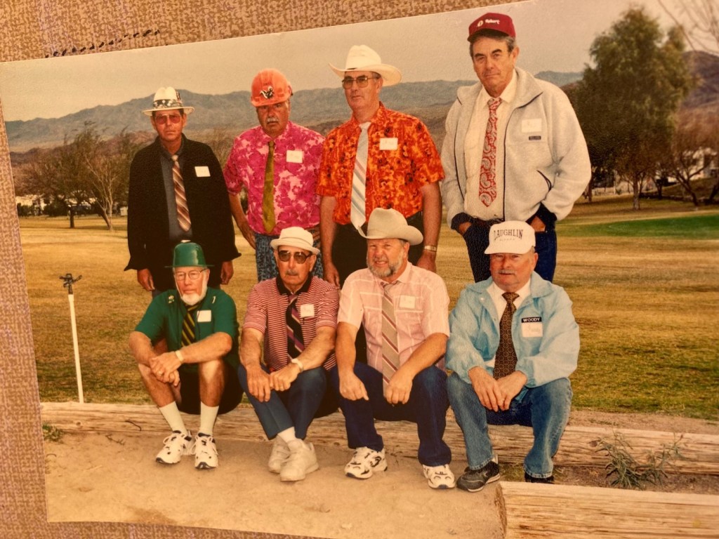 This photo was taken of the “Welcoming Crew” when the women at BML sponsored a golf day for the women from River Lodge, probably about 2001. They were all served lunch in the DooBee Center. Several people contributed to identifying the participants listed here, but corrections are welcome. Front row: Don Storey, Dick Wammock, Jim Erickson, and Don Gustafic. Back row: Bob Schuttpelz, Ernie Psikla, Stan Richmond, and Bill Wallis.